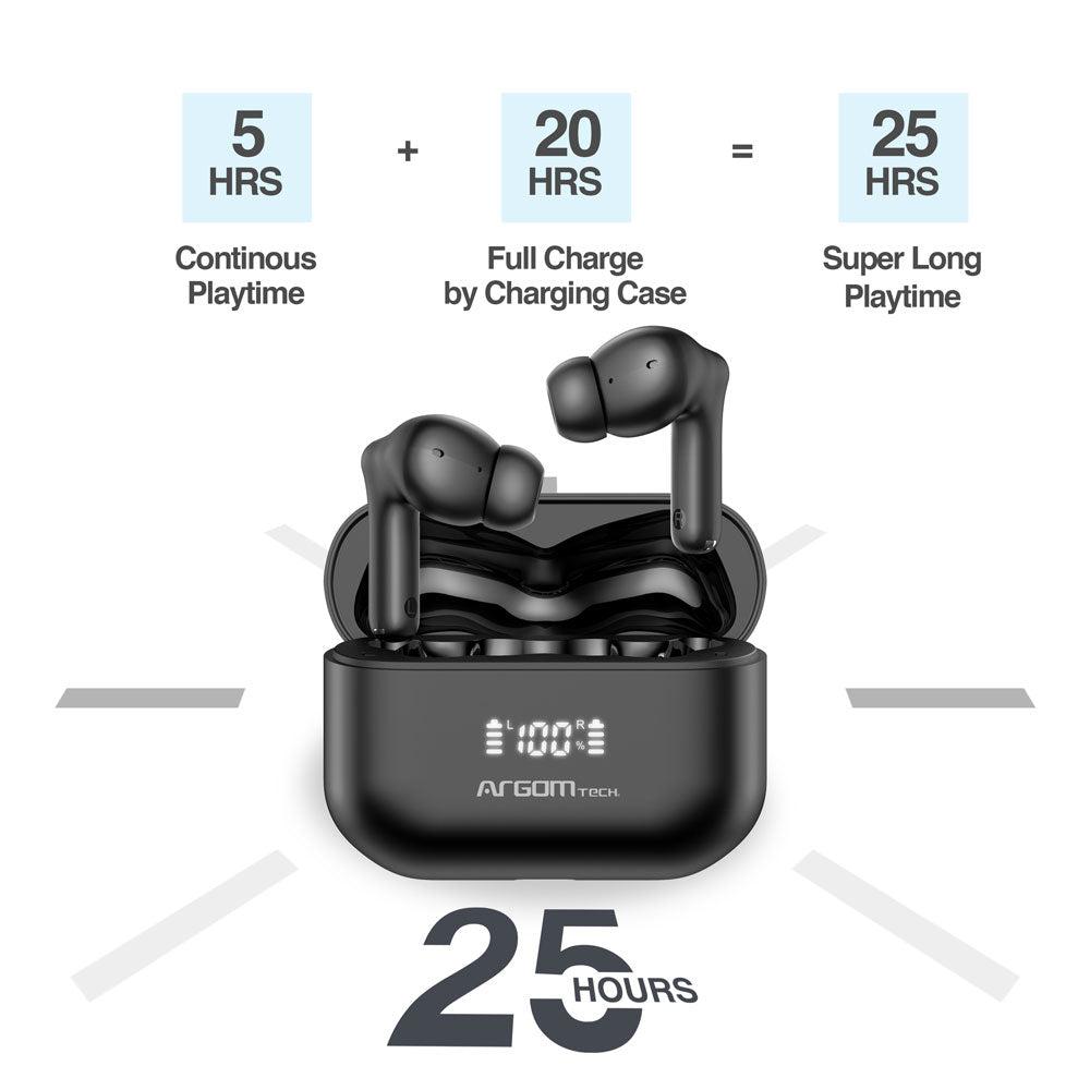 Disfruta de tu música dondequiera que vayas con hasta 25 horas de reproducción, incluyendo 20 horas adicionales gracias a su elegante y compacto estuche de carga. Diseñados para la movilidad y la comodidad, estos audífonos ofrecen tecnología de baja latencia, cuatro micrófonos, carga rápida, carga inalámbrica y clasificación de resistencia al agua IPx5. Además, la nueva pantalla LED del estuche de carga te garantiza que siempre estés al tanto del nivel de batería, brindándote tranquilidad dondequiera que estés.