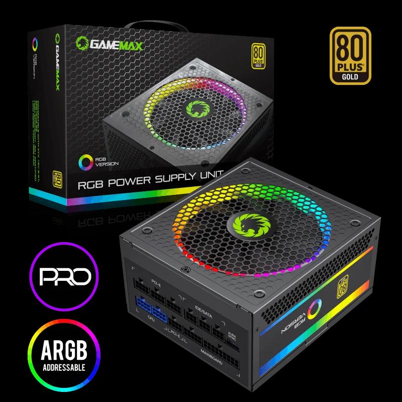 Fuente de Poder GAMEMAX RGB-750 PRO Modular Certificada 80 Plus Gold 14CM ARGB FAN 750WATTS